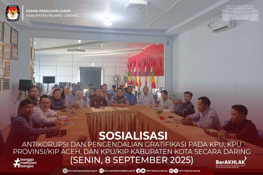 #TemanPemilih, KPU Provinsi Bengkulu mengikuti Sosialisasi Antikorupsi dan Pengendalian Gratifikasi pada KPU, KPU Provinsi/KIP Aceh, dan KPU/KIP Kabupaten Kota secara Daring dari Aula KPU Kabupaten Rejang Lebong, Senin (8/9/2025).