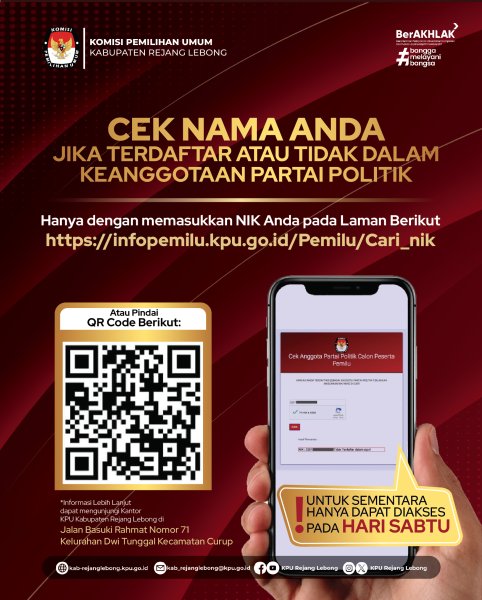 #TemanPemilih, Untuk Sementara CEK NIK anggota dan pengurus partai politik pada Info Pemilu, Hanya Dapat Diakses Pada Setiap Hari SABTU