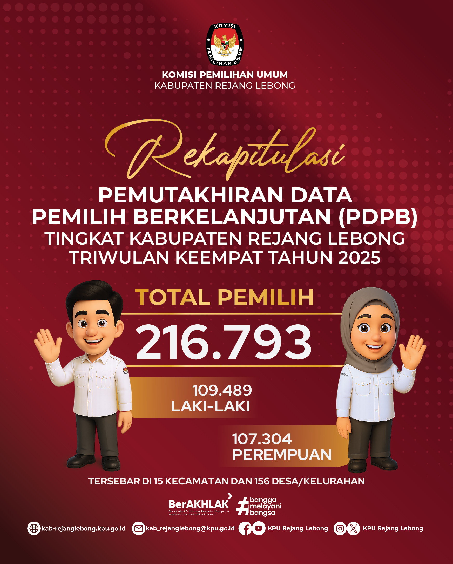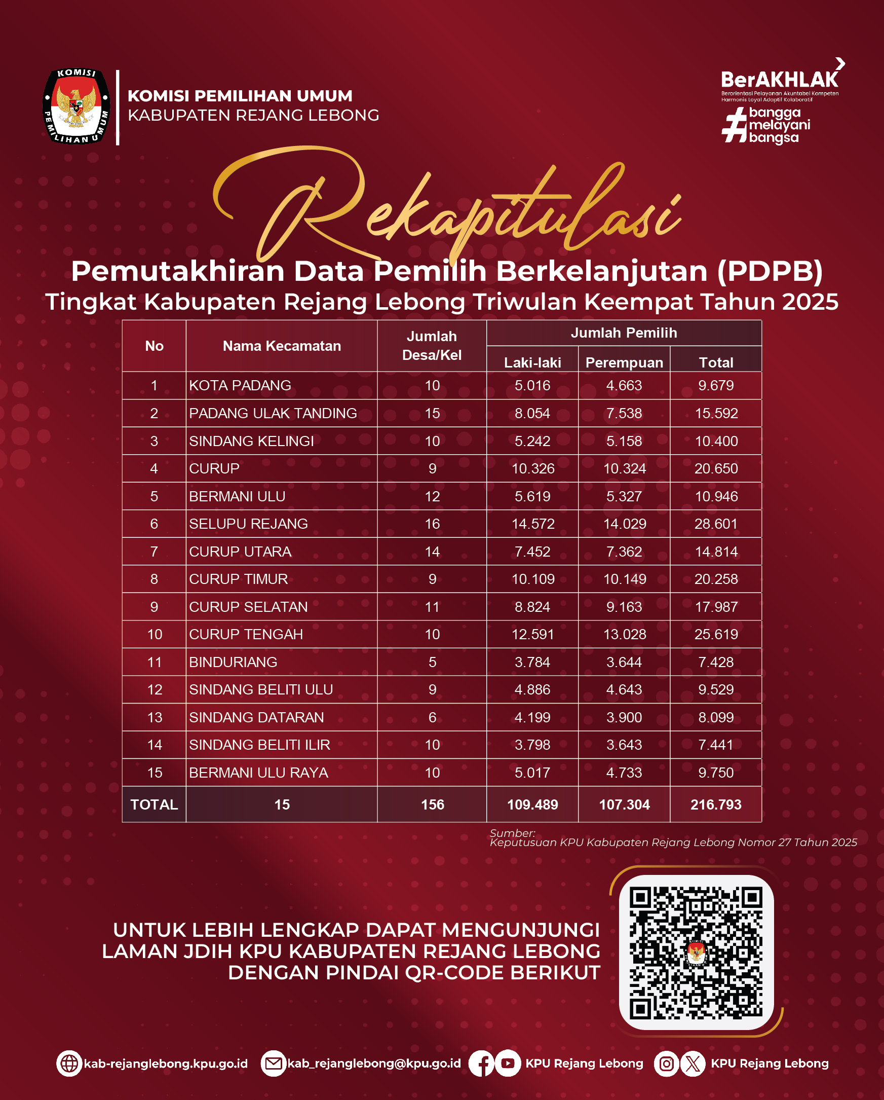 #TemanPemilih, Berikut Rekapitulasi Pemutakhiran Data Pemilih Berkelanjutan (PDPB) KPU Kabupaten Rejang Lebong Triwulan KeempatTahun 2025.