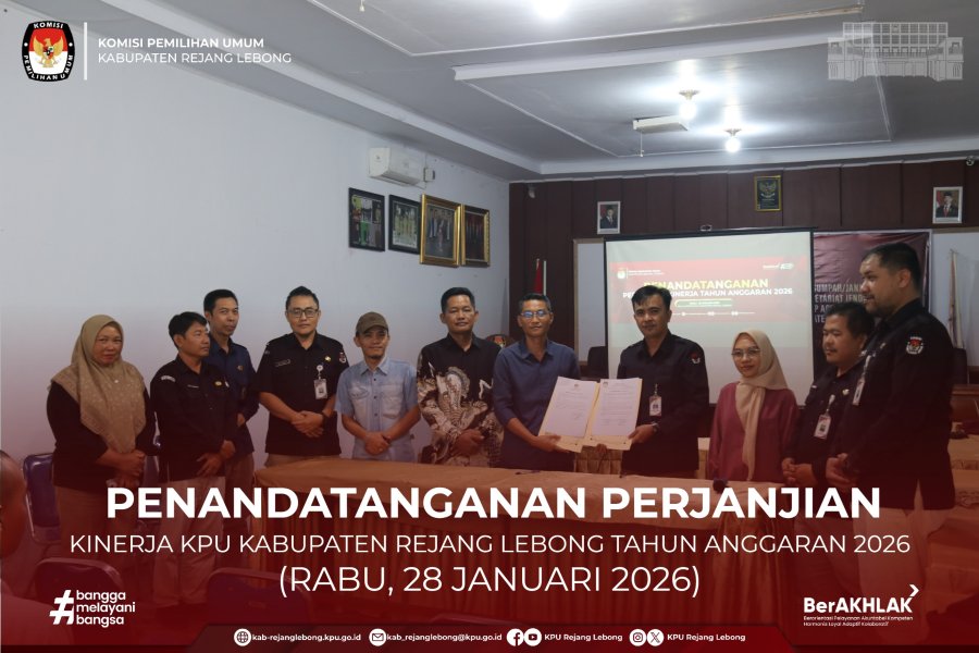 Penandatanganan Perjanjian Kinerja dilakukan oleh Ketua bersama Sekretaris KPU Kabupaten Rejang Lebong dalam bentuk komitmen bersama dalam mewujudkan penyelenggaraan tugas dan fungsi KPU yang profesional, berintegritas, transparan, dan akuntabel sesuai dengan ketentuan peraturan perundang-undangan.