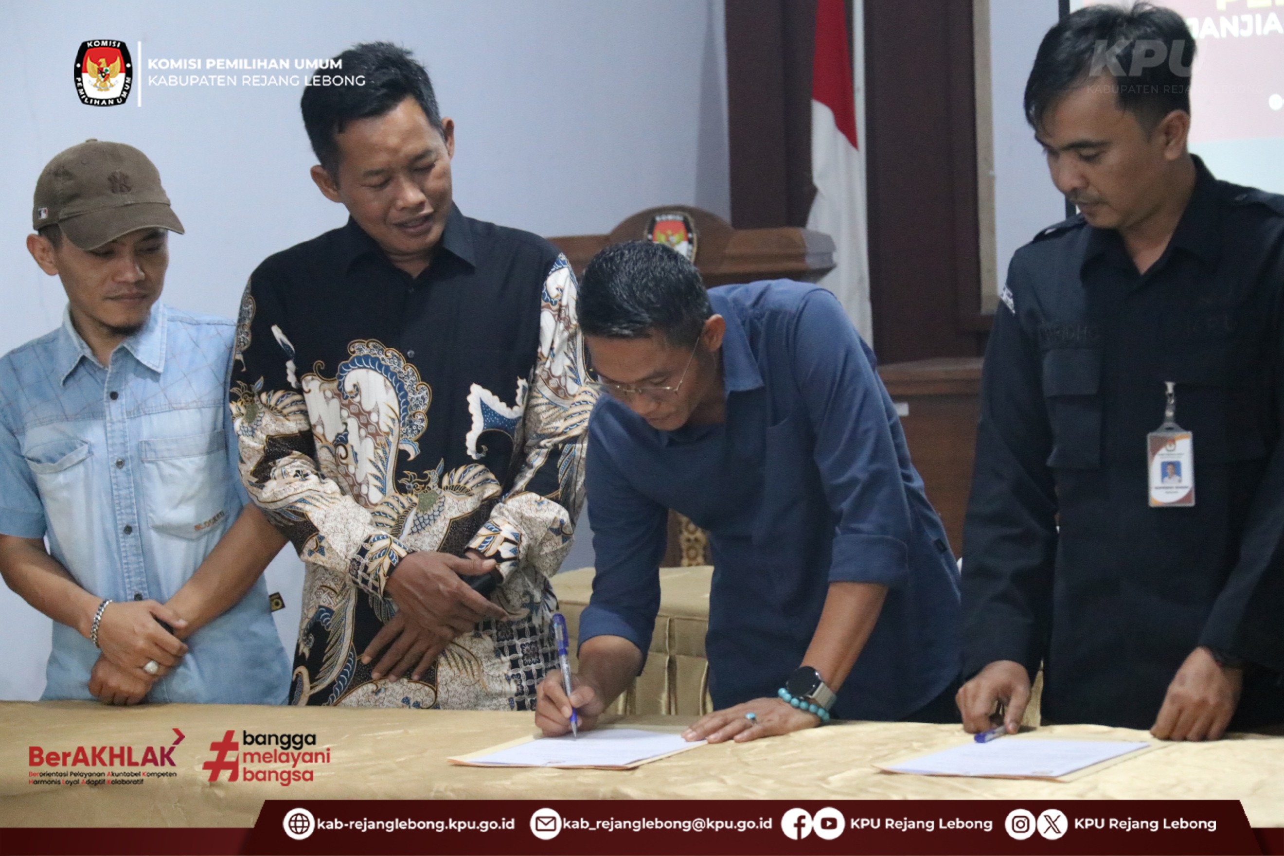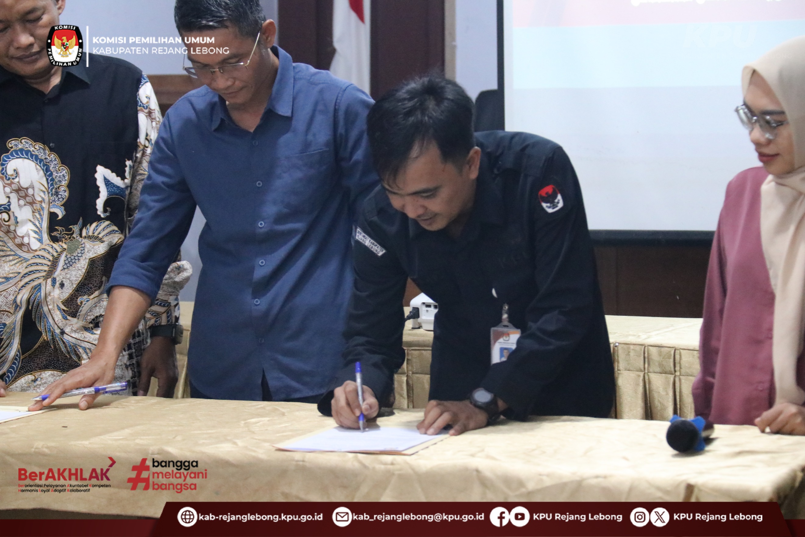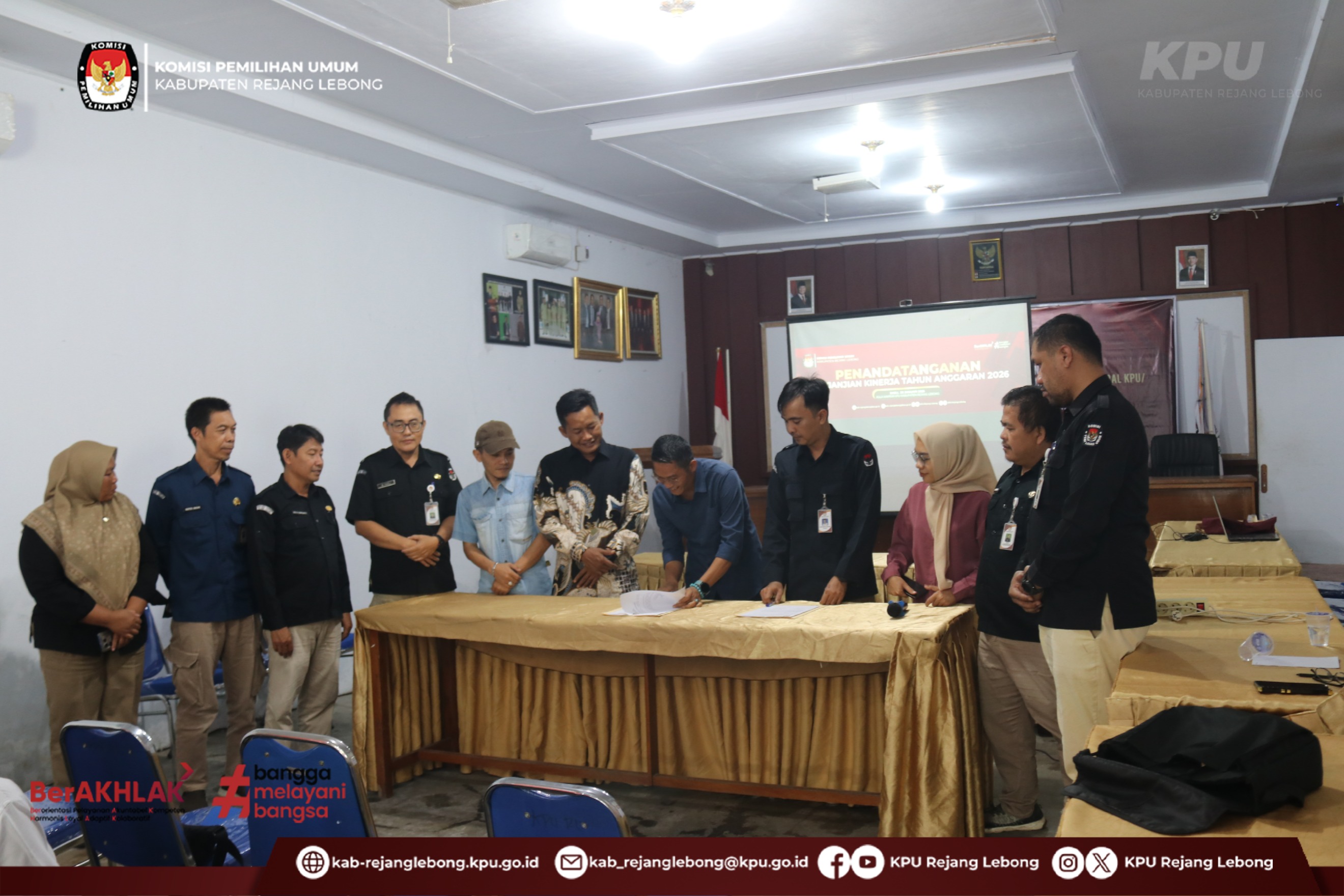 #TemanPemilih Jajaran KPU Kabupaten Rejang Lebong melaksanakan Penandatanganan Perjanjian Kinerja Tahun 2026 pada hari Rabu (28/01/2026) di Aula Kantor KPU kabupaten Rejang Lebong.