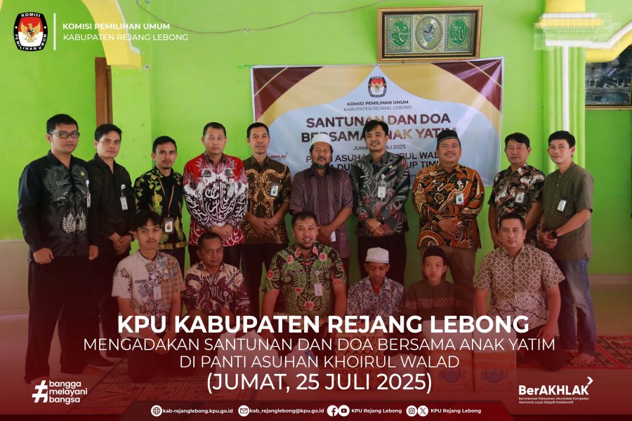 #TemanPemilih, Komisi Pemilihan Umum (KPU) Kabupaten Rejang Lebong melaksanakan kegiatan Doa Bersama dan Santunan Anak Yatim di Panti Asuhan Khoirul Walad Curup Timur pada Jumat (25/07/2025 )Pagi.