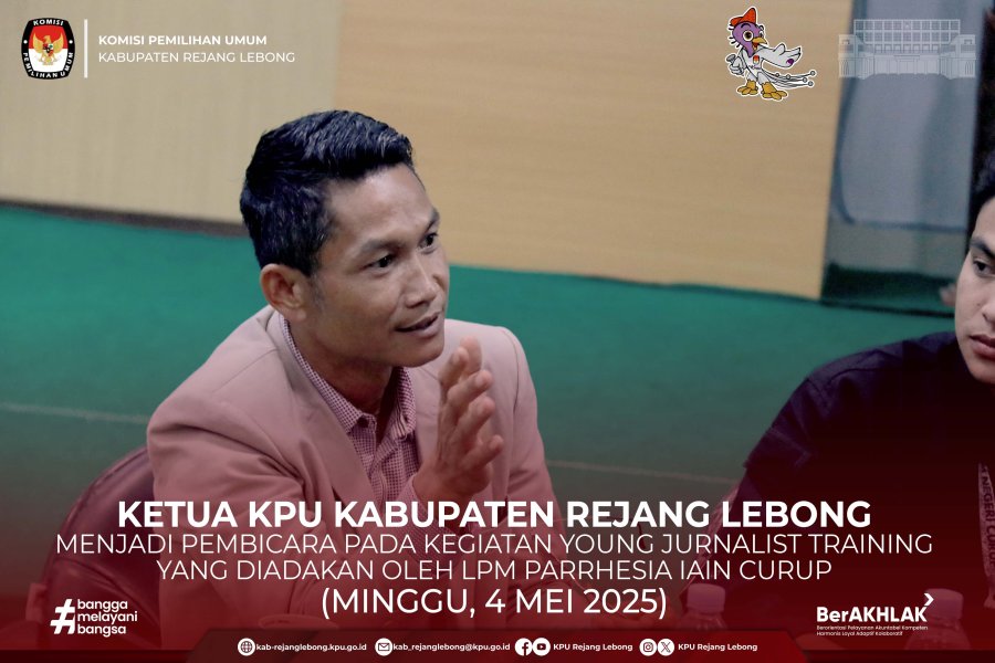 #TemanPemilih, Ketua KPU Kabupaten Rejang Lebong Ujang Maman Menjadi Pembicara Pada Kegiatan Young Jurnalist Training (Pelatihan Wartawan Pemula dan Praktik Langsung) yang diadakan Oleh LPM (Lembaga Pers Mahasiswa) Parrhesia IAIN Curup, Minggu 4 Mei 2025 siang.