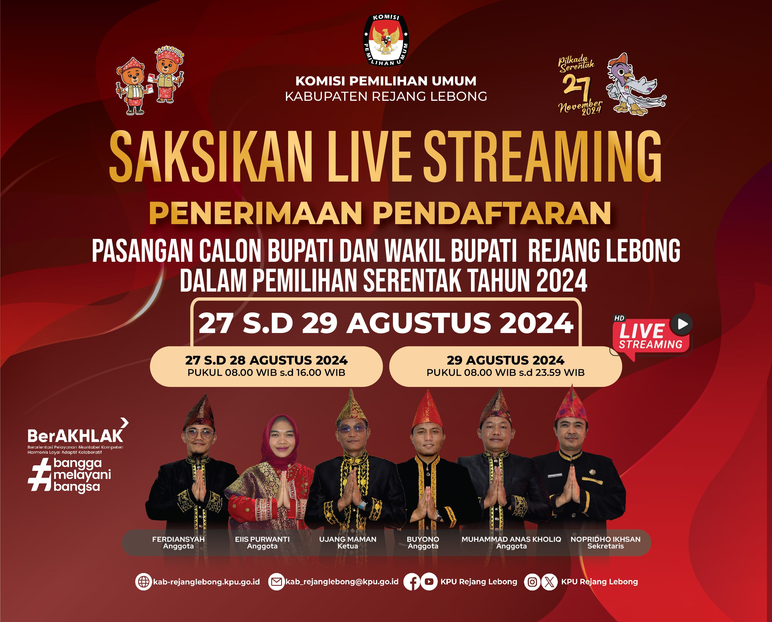 LIVE STREAMING PENERIMAAN PENDAFTARAN BAPASLON BUPATI DAN WAKIL BUPATI REJANG LEBONG 2024