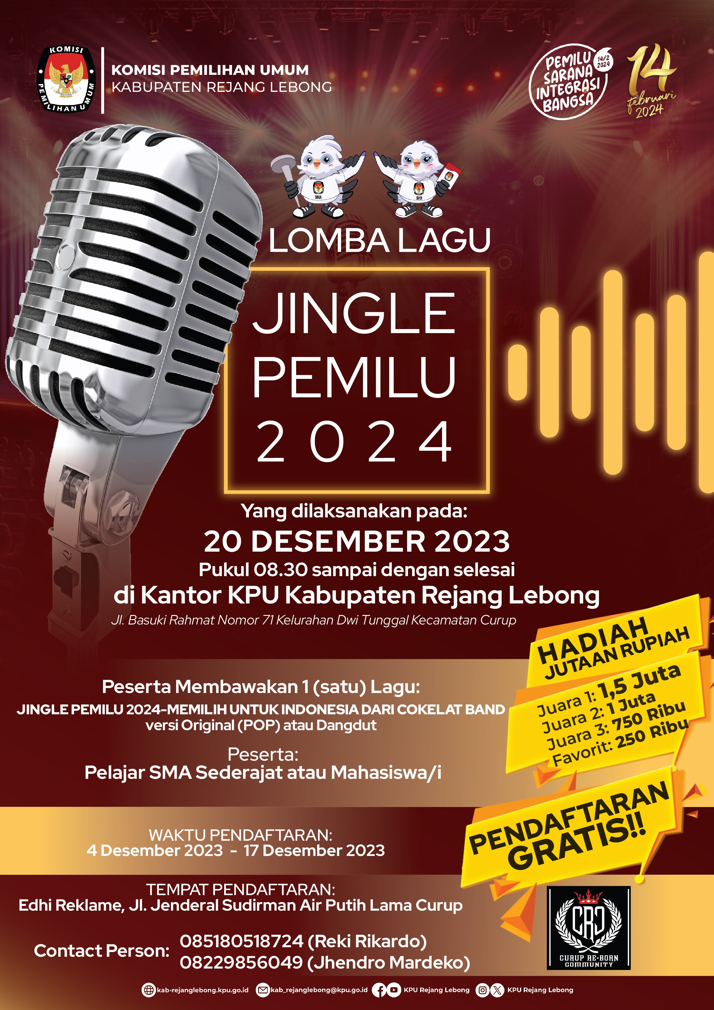 LOMBA LAGU JINGLE PEMILU 2024 | 20 Desember 2023 di Kantor KPU Kabupaten Rejang Lebong.