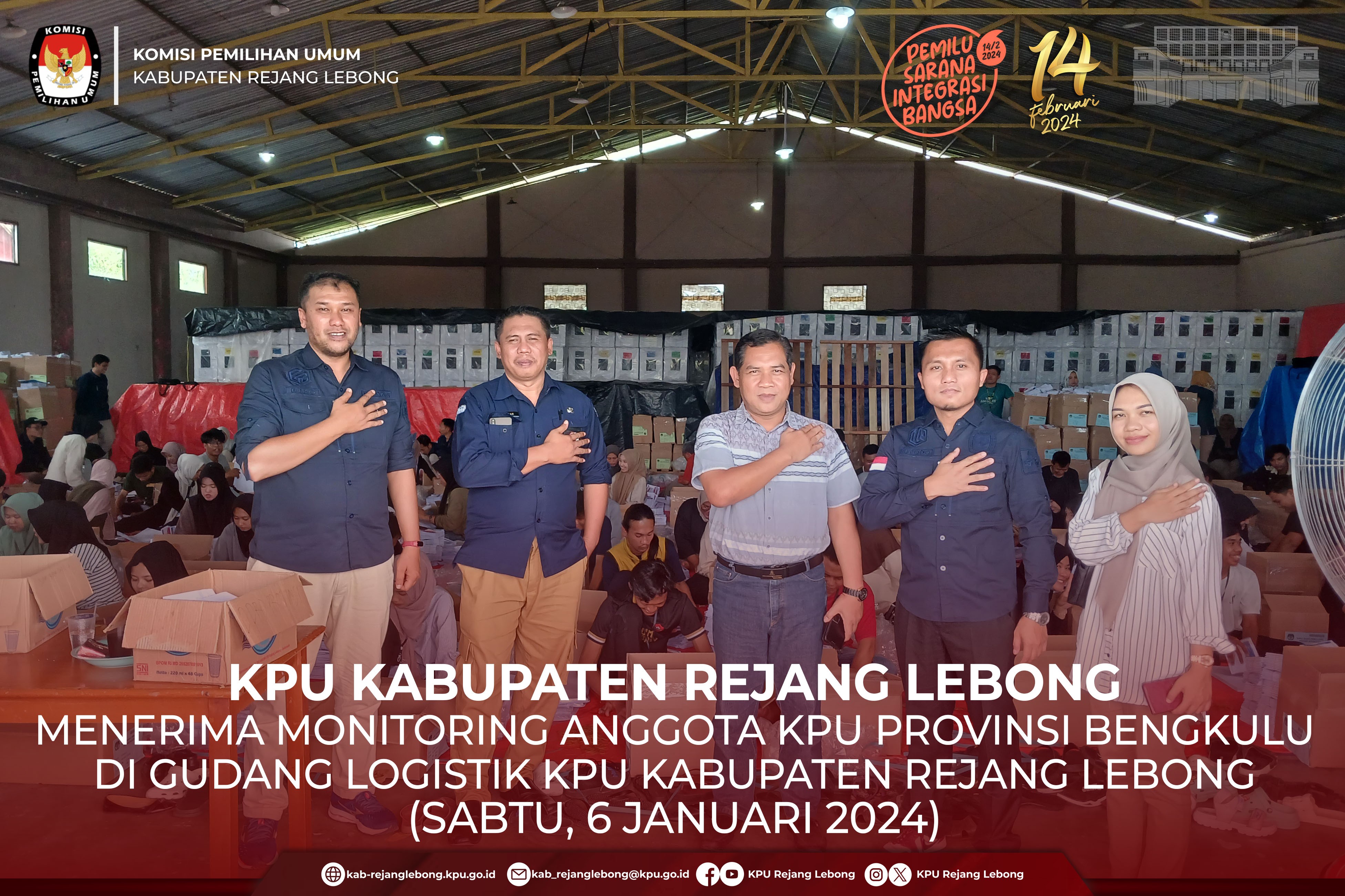#TemanPemilih, KPU Kabupaten Rejang Lebong Menerima Monitoring dari Anggota KPU Provinsi Bengkulu Dodi Hendra Supiarso di dampingi oleh Kabag TPHS Oktan Huzaeiry ke Gudang Logistik KPU Kabupaten Rejang Lebong Gedung Adam Futsal Curup Tengah, Sabtu (6/1) Siang.