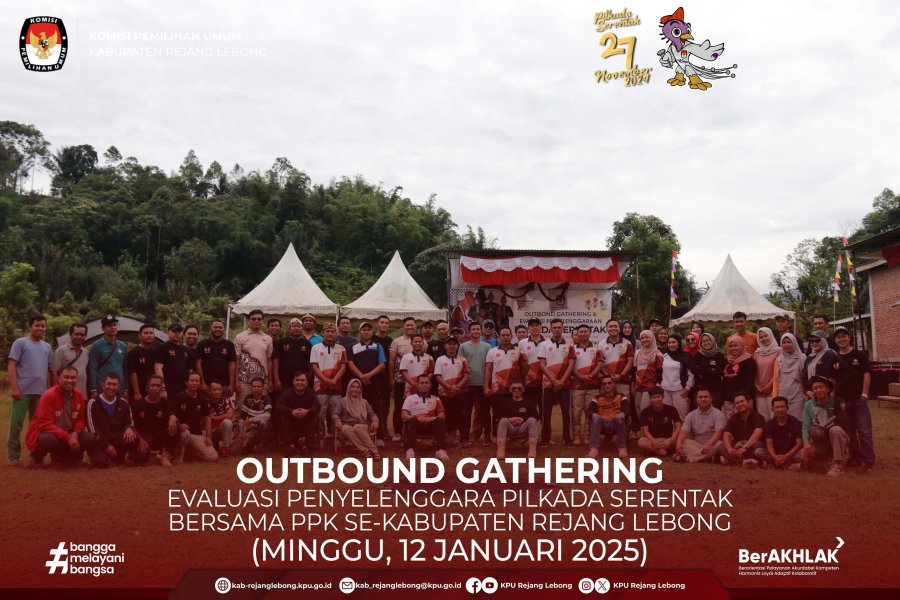 #TemanPemilih, KPU Kabupaten Rejang Lebong Mengadakan Outbound Gathering dan Evaluasi Penyelenggara Pilkada Serentak Tahun 2024 Bersama PPK se-Kabupaten Rejang Lebong di Wisata Ulu Musi Trokon Selupu Rejang, Minggu 12 Januari 2025 pagi.