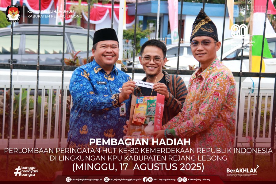 #TemanPemilih, KPU Kabupaten Rejang Lebong Melakukan Pembagian Hadiah Perlombaan Dalam Rangka Memeriahkan Kemerdekaan Republik Indonesia ke-80, di Kantor KPU Kabupaten Rejang Lebong, Minggu (17/8/2025) Pagi