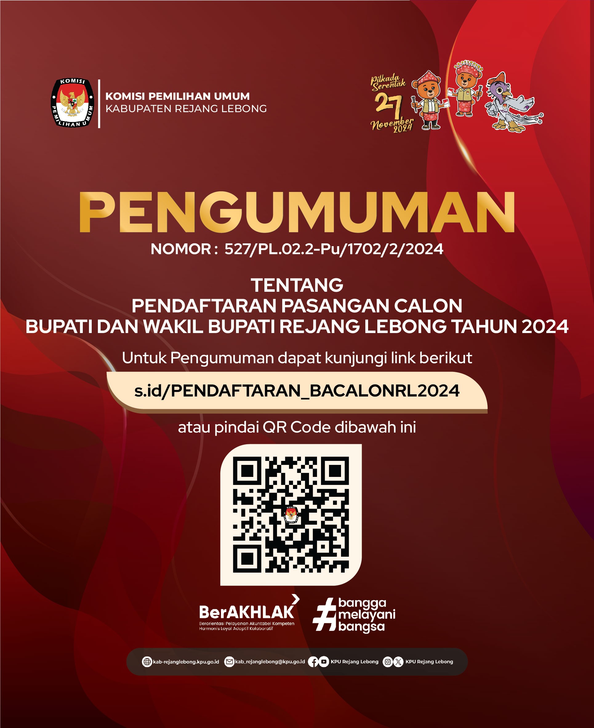 PENGUMUMAN PENDAFTARAN PASANGAN CALON BUPATI DAN WAKIL BUPATI REJANG LEBONG TAHUN 2024