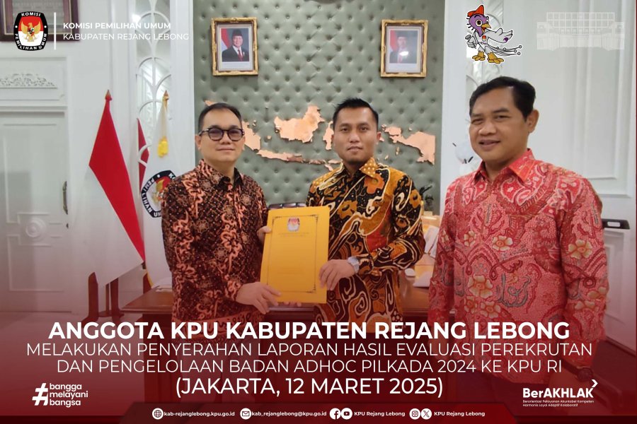 #TemanPemilih, Anggota KPU Kabupaten Rejang Lebong Divisi Sosdiklih Parmas dan SDM Buyono, Melakukan Penyerahan Laporan Hasil Evaluasi Perekrutan dan Pengelolaan badan Adhoc Pilkada tahun 2024 ke KPU Republik Indonesia (12 Maret 2025).