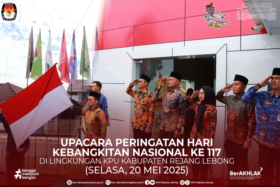 #TemanPemilih, KPU Kabupaten Rejang Lebong Melaksanakan Upacara Peringatan Hari Kebangkitan Nasional Ke 117 pada Hari Selasa, 20 Mei 2025 di Kantor KPU Kabupaten Rejang Lebong.