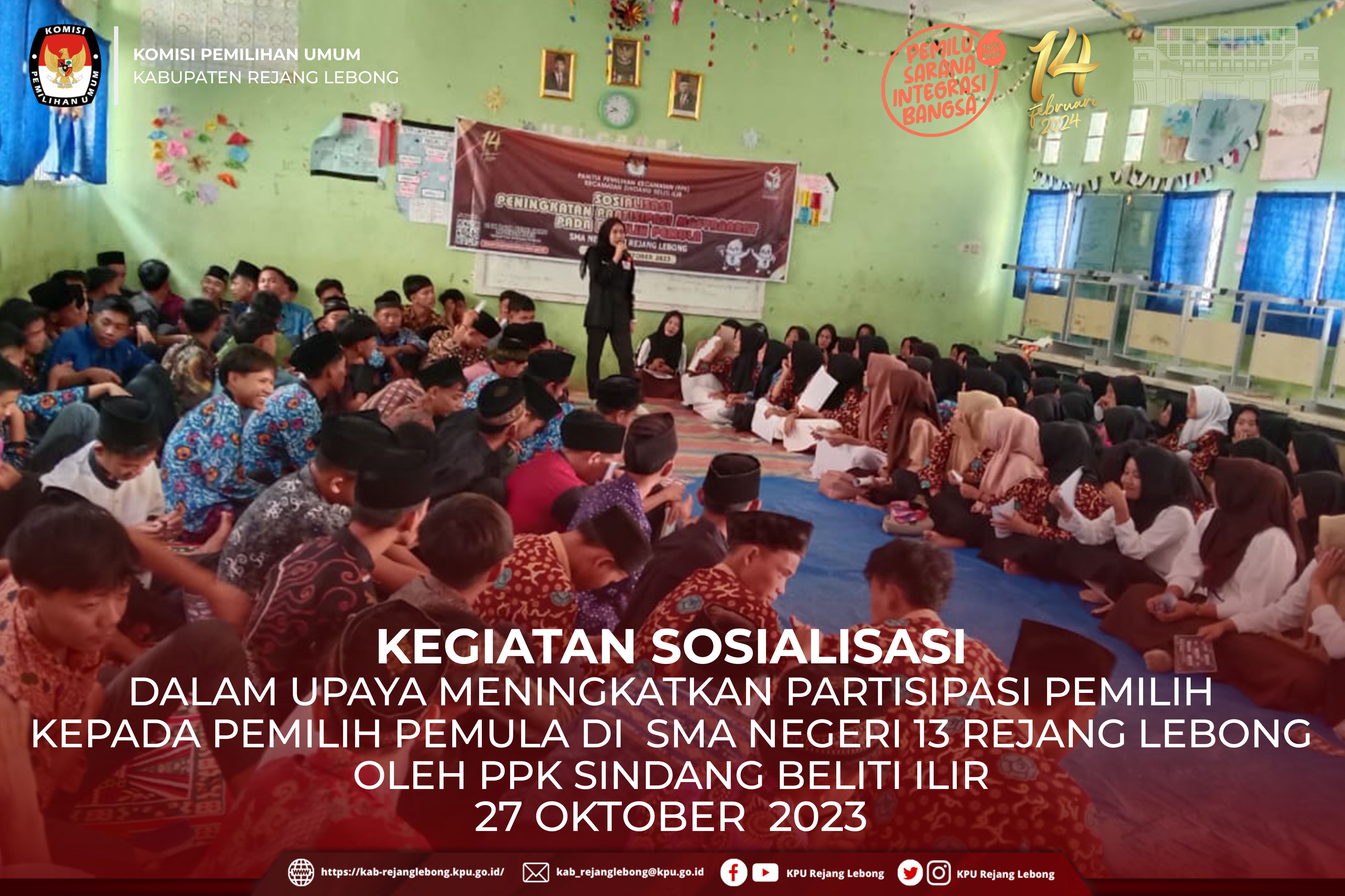 #TemanPemilih, Kalian perlu tahu, PPK Sindang Beliti Ilir melakukan kegiatan Sosialisasi kepada Pemilih Pemula di SMA Negeri 13 Rejang Lebong, 27 Oktober 2023 lalu.