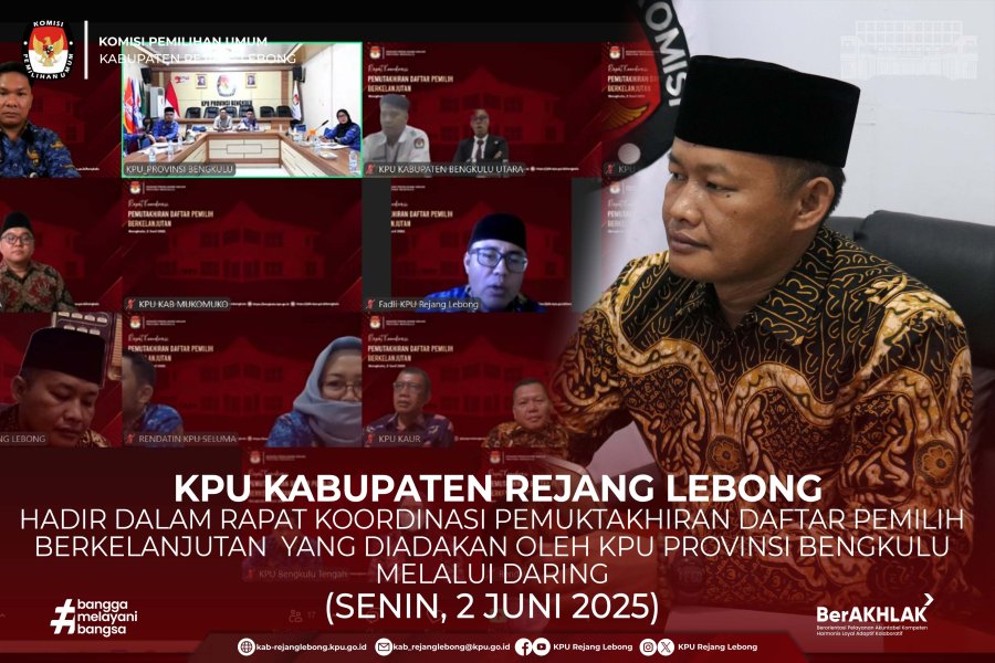 #TemanPemilih, Anggota KPU Kabupaten Rejang Lebong Divisi Rendatin Muhammad Anas Kholiq beserta Kasubbag Rendatin Muhamad Fadli beserta Operator Sidalih KPU kabupaten Rejang Lebong, menghadiri Rapat Koordinasi Pemuktakhiran Daftar Pemilih Berkelanjutan (PDPB) yang diadakan Oleh KPU Provinsi Bengkulu Melalu Media Daring, Senin (2/6/2025) Pagi.