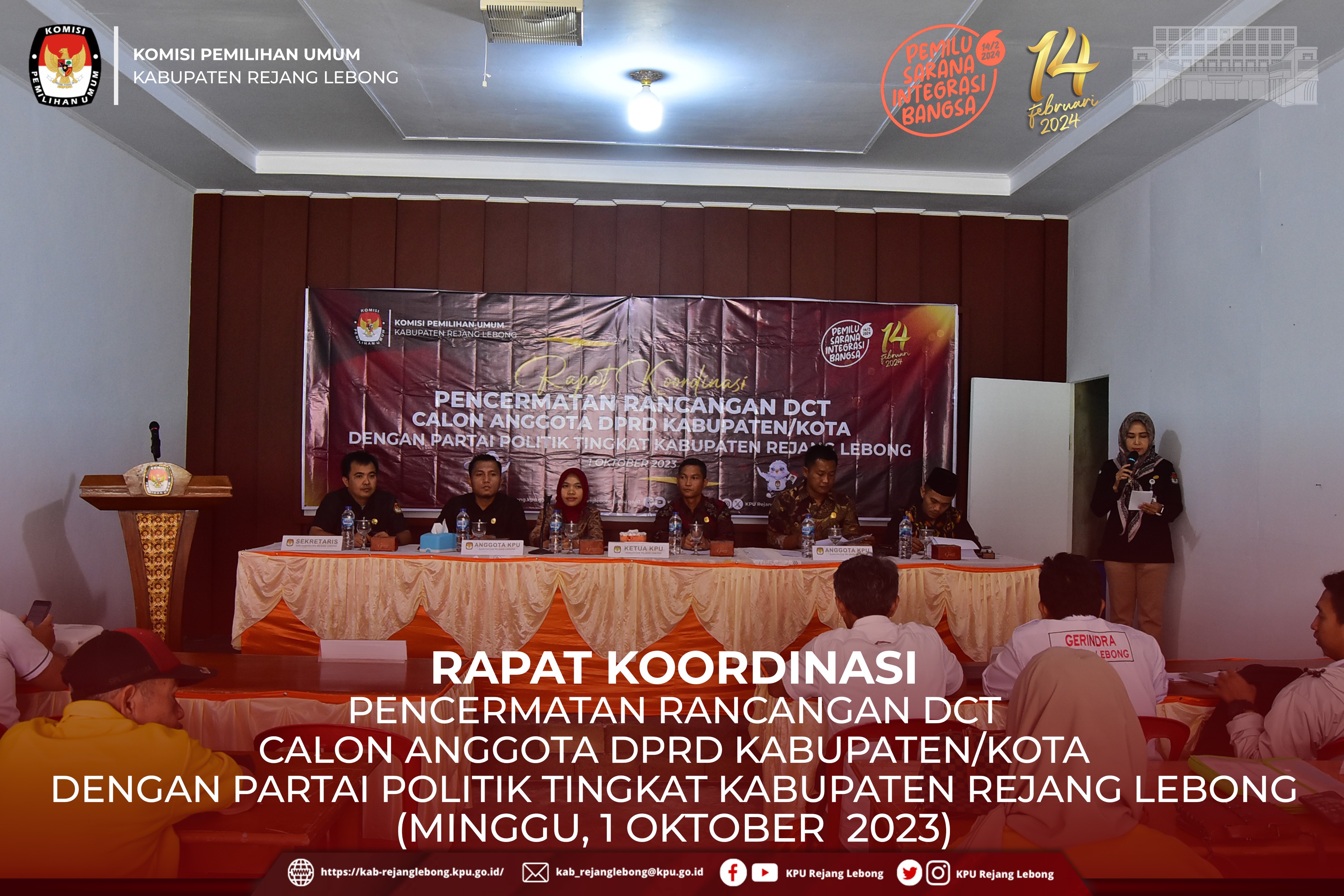 #TemanPemilih, KPU Kabupaten Rejang Lebong mengadakan Kegiatan Rapat Koordinasi Pencermatan Rancangan DCT Calon Anggota DPRD Kabupaten/Kota dengan Partai Politik tingkat Kabupaten Rejang Lebong, Minggu (1/10) Siang.