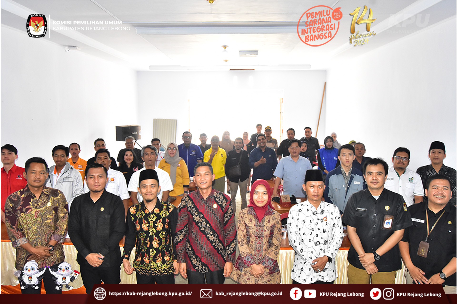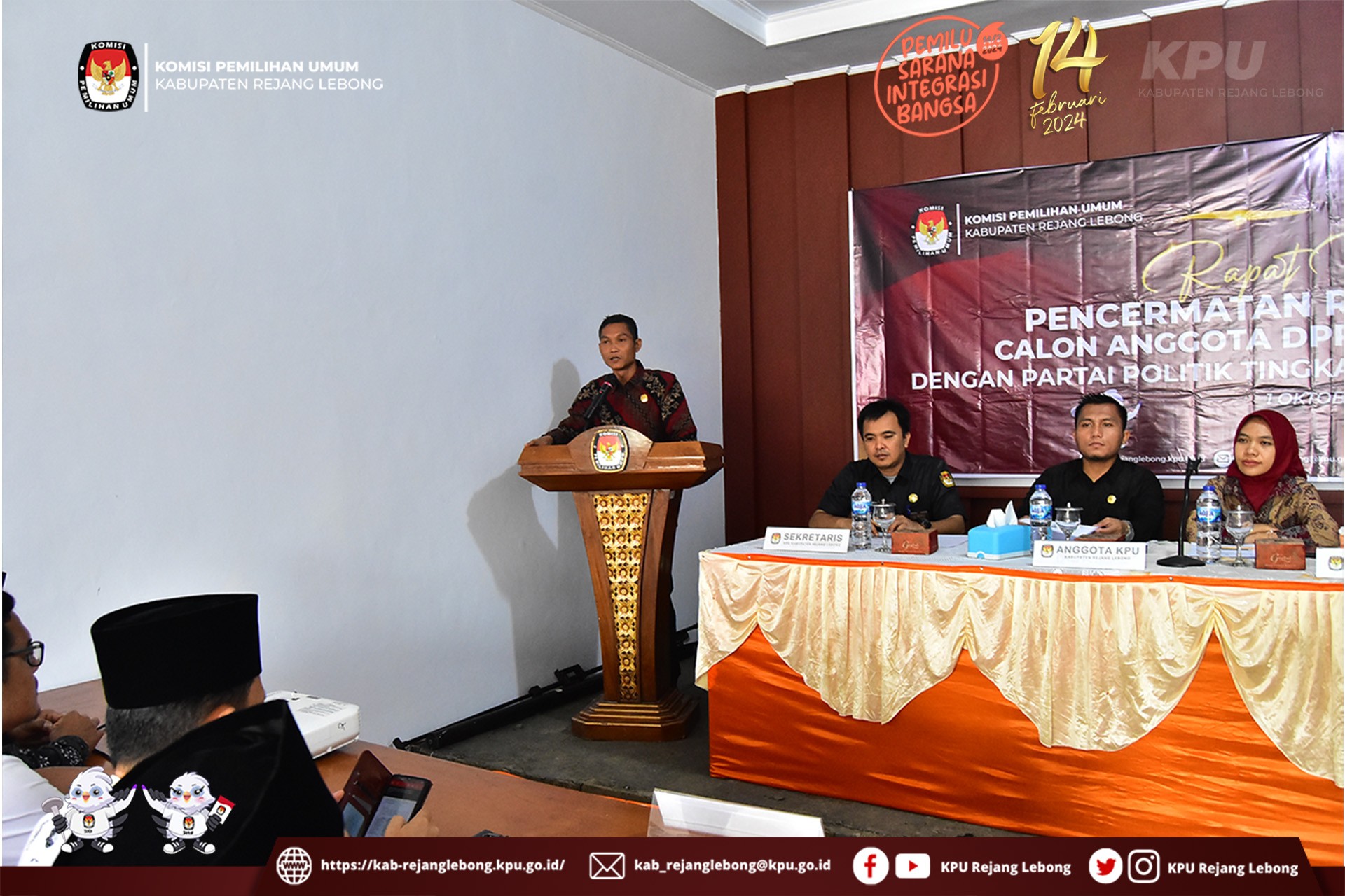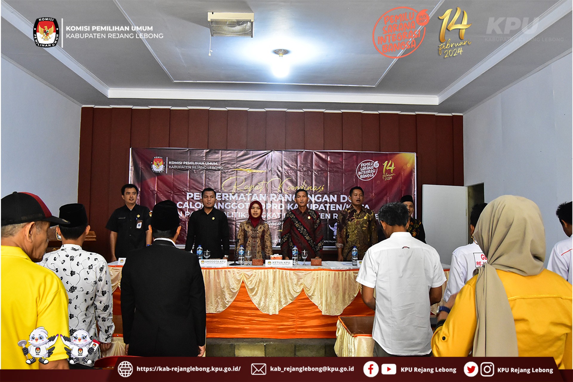 Turut Hadir yakni Anggota KPU Kabupaten Rejang Lebong beserta sekretaris dan para Kasubbag, Staf KPU Kabupaten Rejang Lebong, Perwakilan Partai Politik Tingkat Kabupaten Rejang Lebong, Anggota BAWASLU Rejang Lebong.