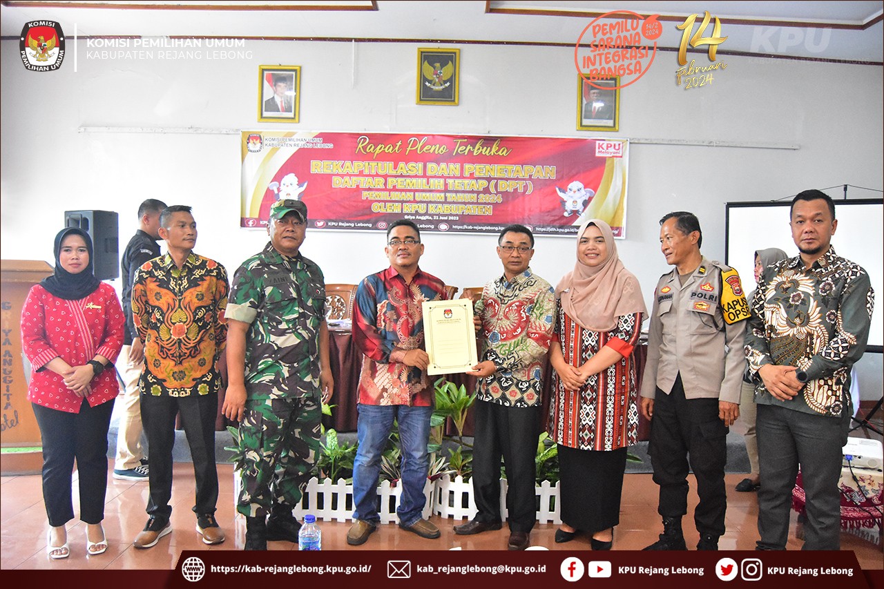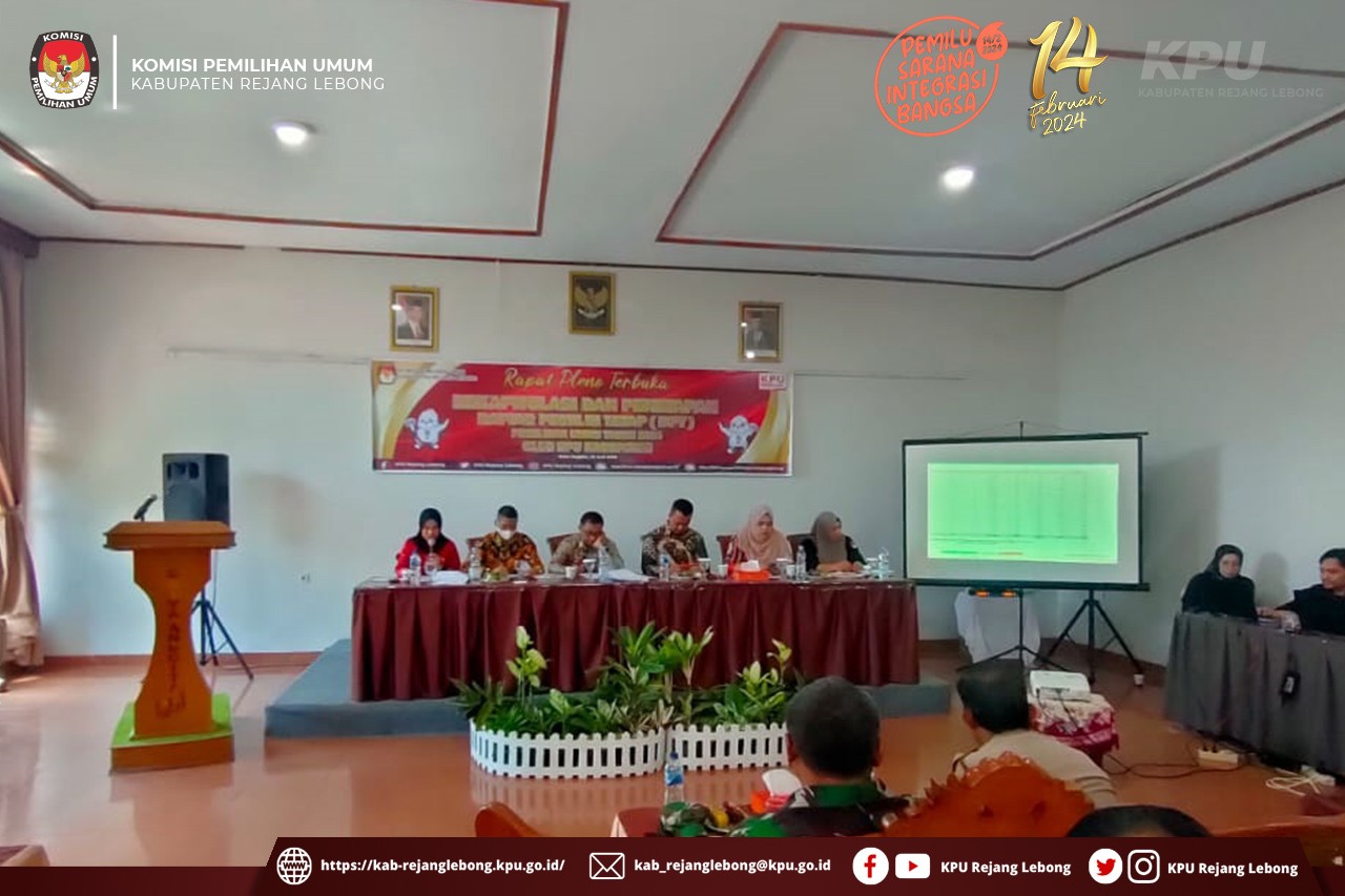 Rapat Pleno Terbuka Rekapitulasi dan Penetapan Daftar Pemilih Tetap oleh KPU kabupaten Rejang Lebong dalam Pemilihan Umum 2024
