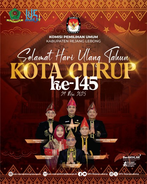 #TemanPemilih, Keluarga Besar KPU Kabupaten Rejang Lebong Mengucapkan Selamat Hari Ulang Tahun Kota Curup yang ke-145 Tahun, 29 Mei 2025