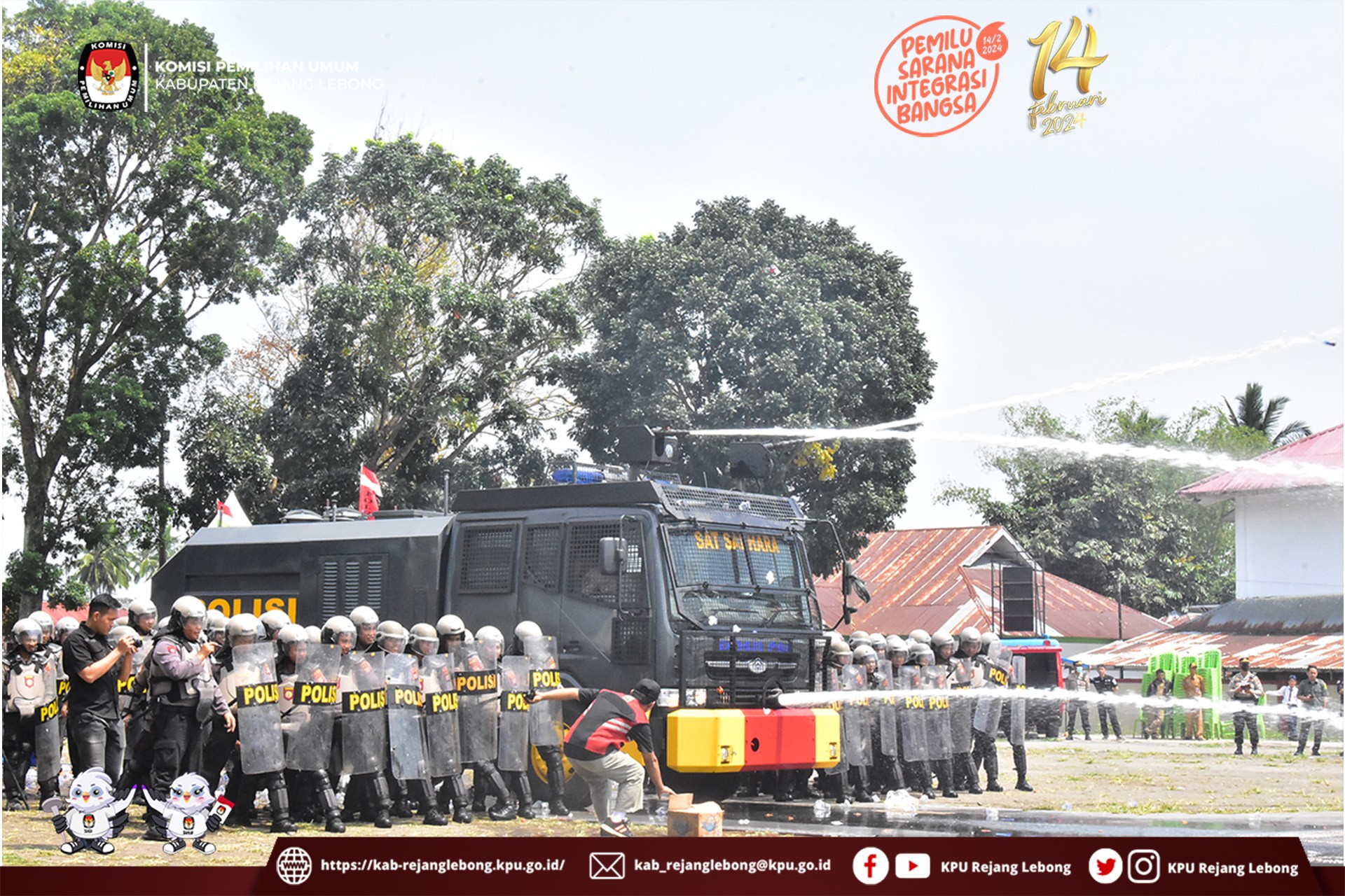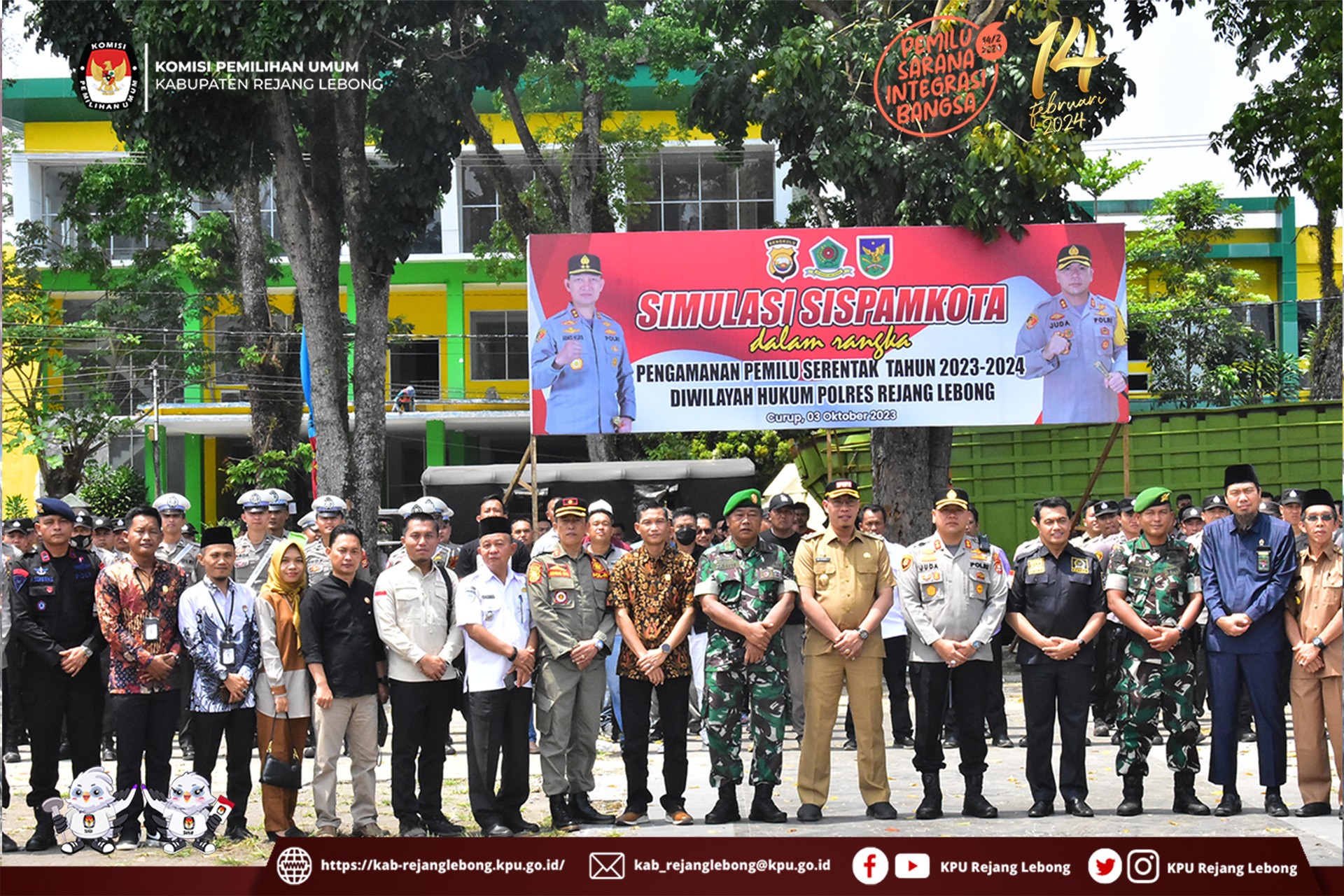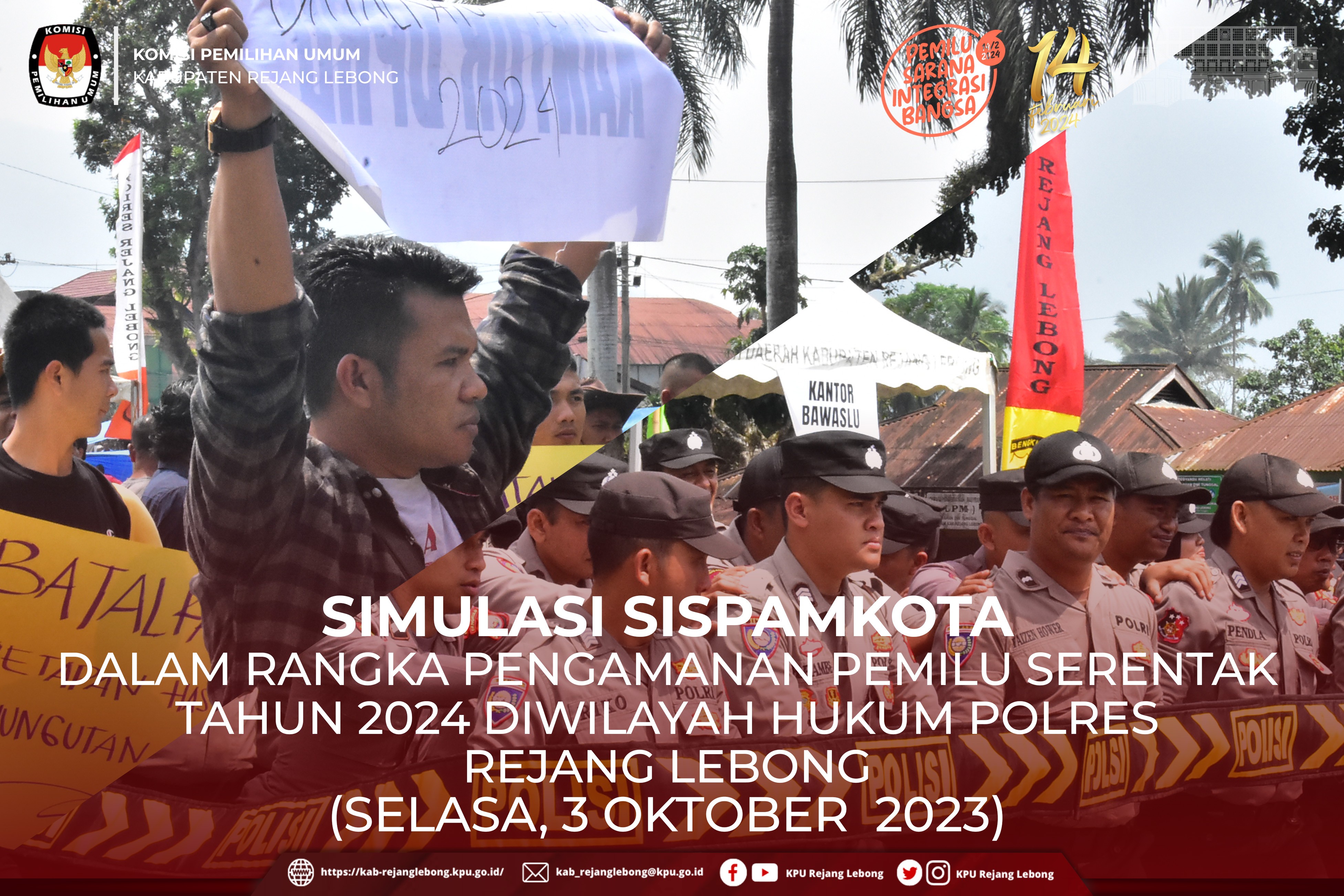 #TemanPemilih, Ketua dan Anggota KPU Kabupaten Rejang Lebong menghadiri kegiatan Simulasi Sispamkota yang diadakan oleh Polres Rejang Lebong dalam Rangka Pengamanan Pemilu Serentak Tahun 2023-2024 di wilayah hukum Polres Rejang Lebong yang di Lapangan Dwi Tunggal Curup, Selasa (3/10) Pagi.