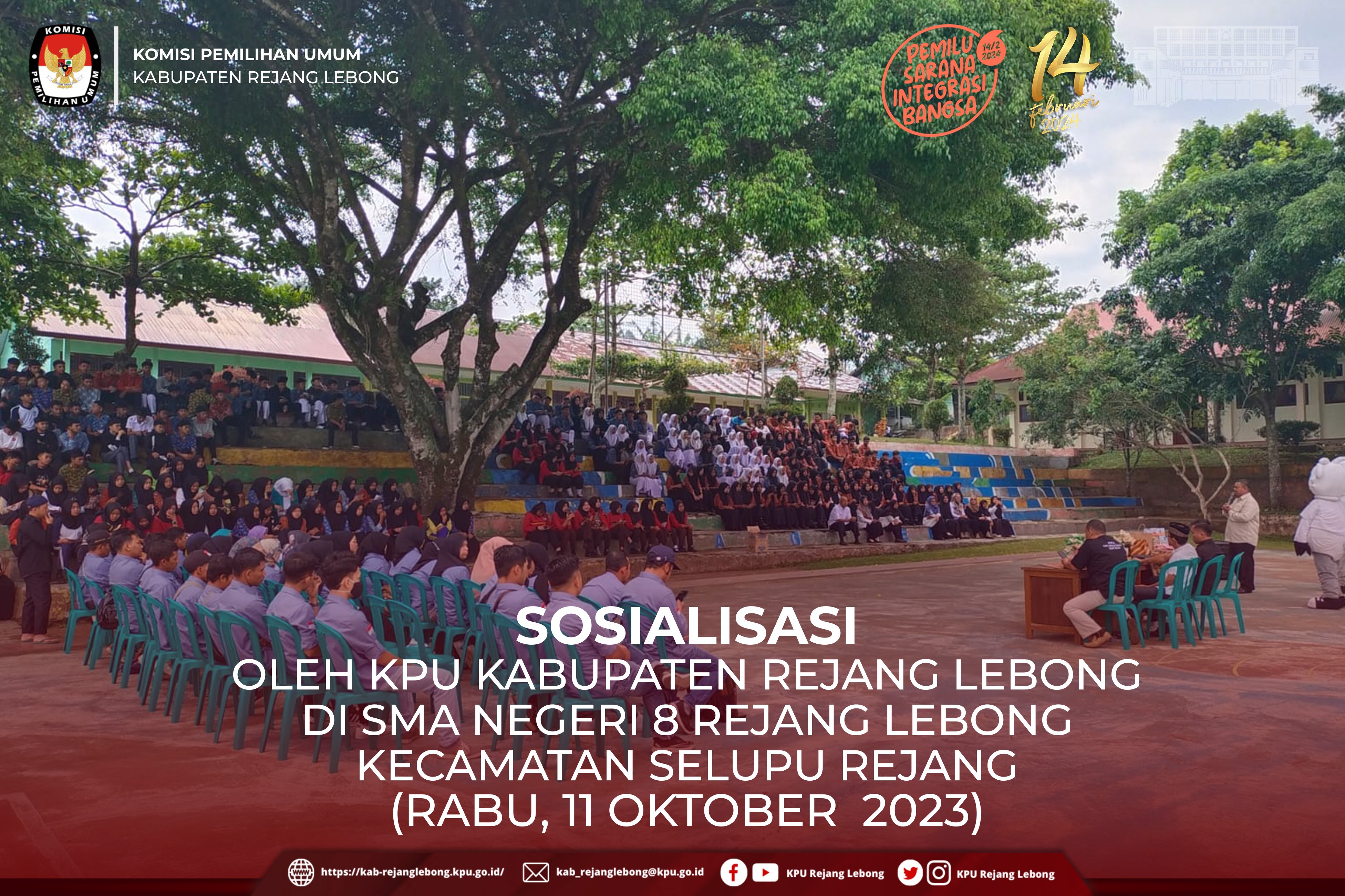 Kegiatan ini dihadiri oleh seluruh siswa siswi SMAN 8 Rejang Lebong dan dewan Guru serta staff tata usaha. Kegiatan ini juga diisi dengan pembagian doorprize dari KPU Kabupaten Rejang Lebong dan PPK Selupu rejang kepada peserta Sosialisasi dan kegiatan ini bertujuan untuk mengenalkan dan memeberitahu tentang pentingnya Pemilu bagi pemilih Pemula yakni Siswa siswi dan mengingatkan untuk datang ke TPS pada Tanggal 14 Februari 2024.