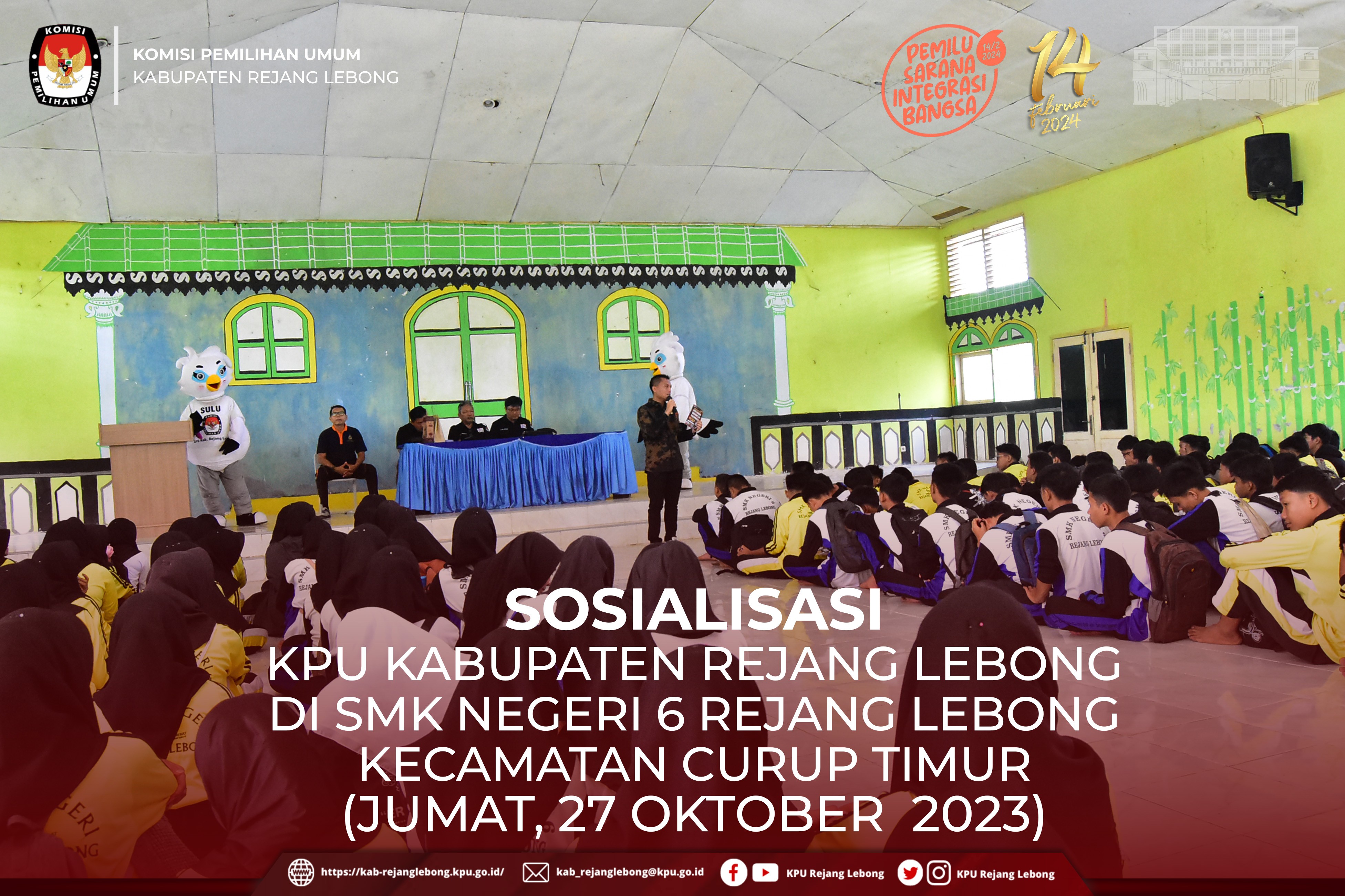 Hallo #TemanPemilih, Anggota KPU Kabupaten Rejang Lebong Divisi Sosdiklih Parmas dan SDM Buyono, Bersama PPK Curup Timur dan PPS se-Kecamatan Curup Timur melakukan Sosialisasi Pendidikan Pemilu dan Pemilih Pemula di SMK Negeri 6 Rejang Lebong Kecamatan Curup Timur , Jumat (27/10) Pagi,