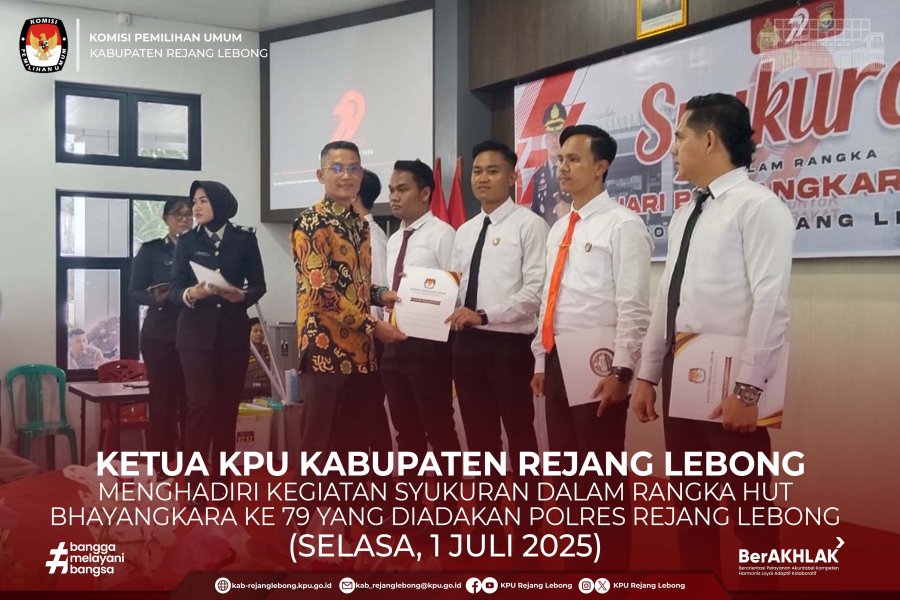 #TemanPemilih, Ketua KPU Kabupaten Rejang Lebong Ujang Maman Menghadiri Syukuran dalam Peringatan HUT Bhayangkara ke-79 yang diselenggarakan oleh Polres Rejang Lebong, Selasa (1/6/2025) Pagi.