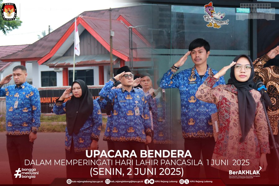 #TemanPemilih, KPU Kabupaten Rejang Lebong Melaksanakan Upacara Peringatan Hari Lahir Pancasila pada Hari Senin 2 Juni 2025 di Kantor KPU Kabupaten Rejang Lebong.